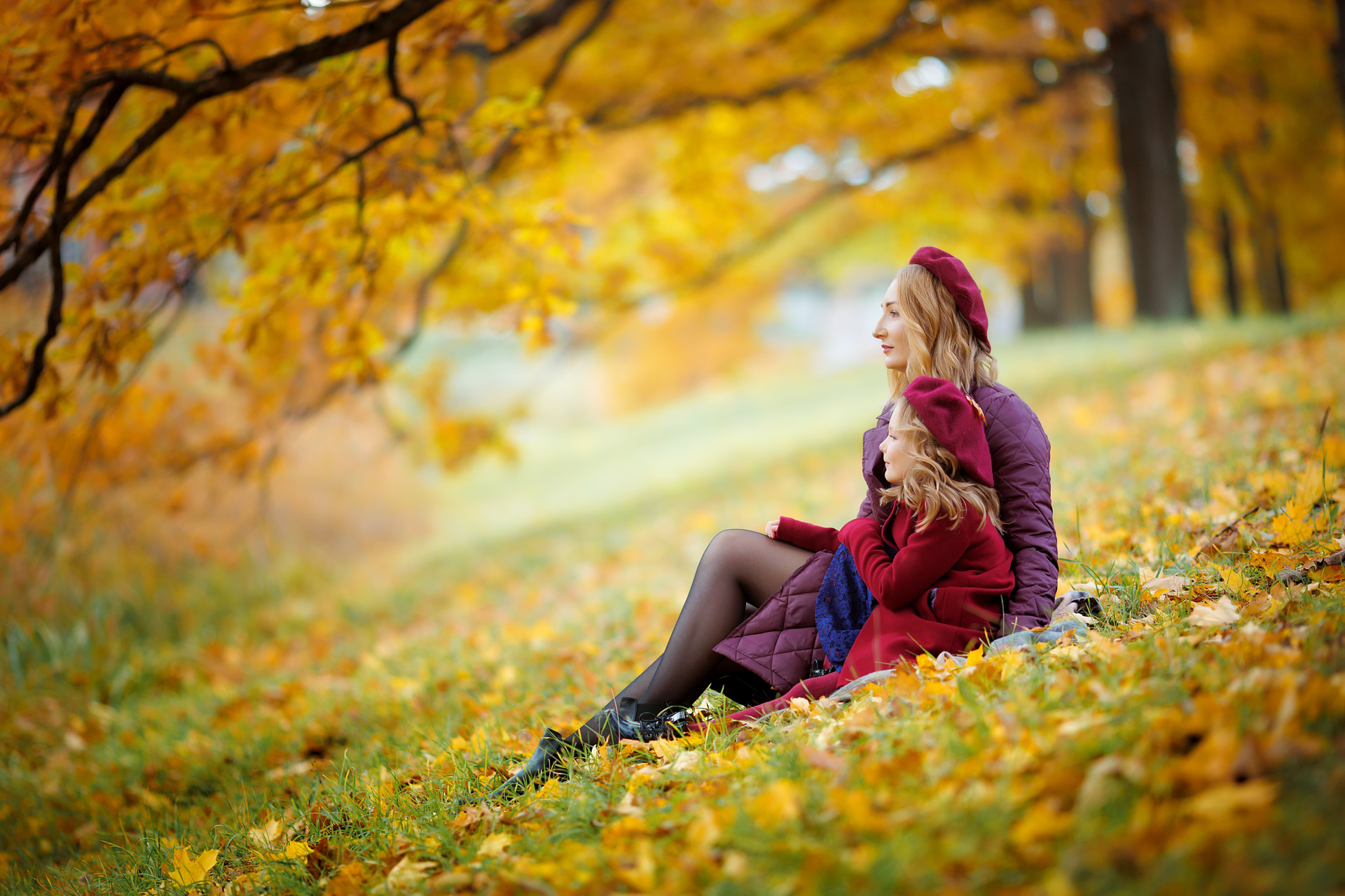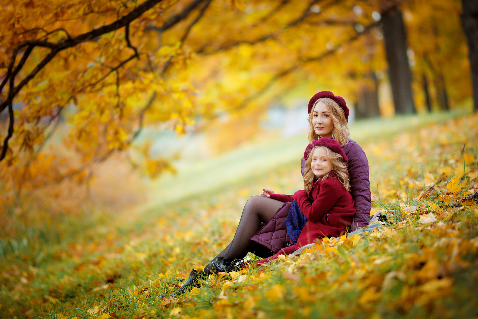 Осення прогулка мамы с дочками в Екатерининском парке