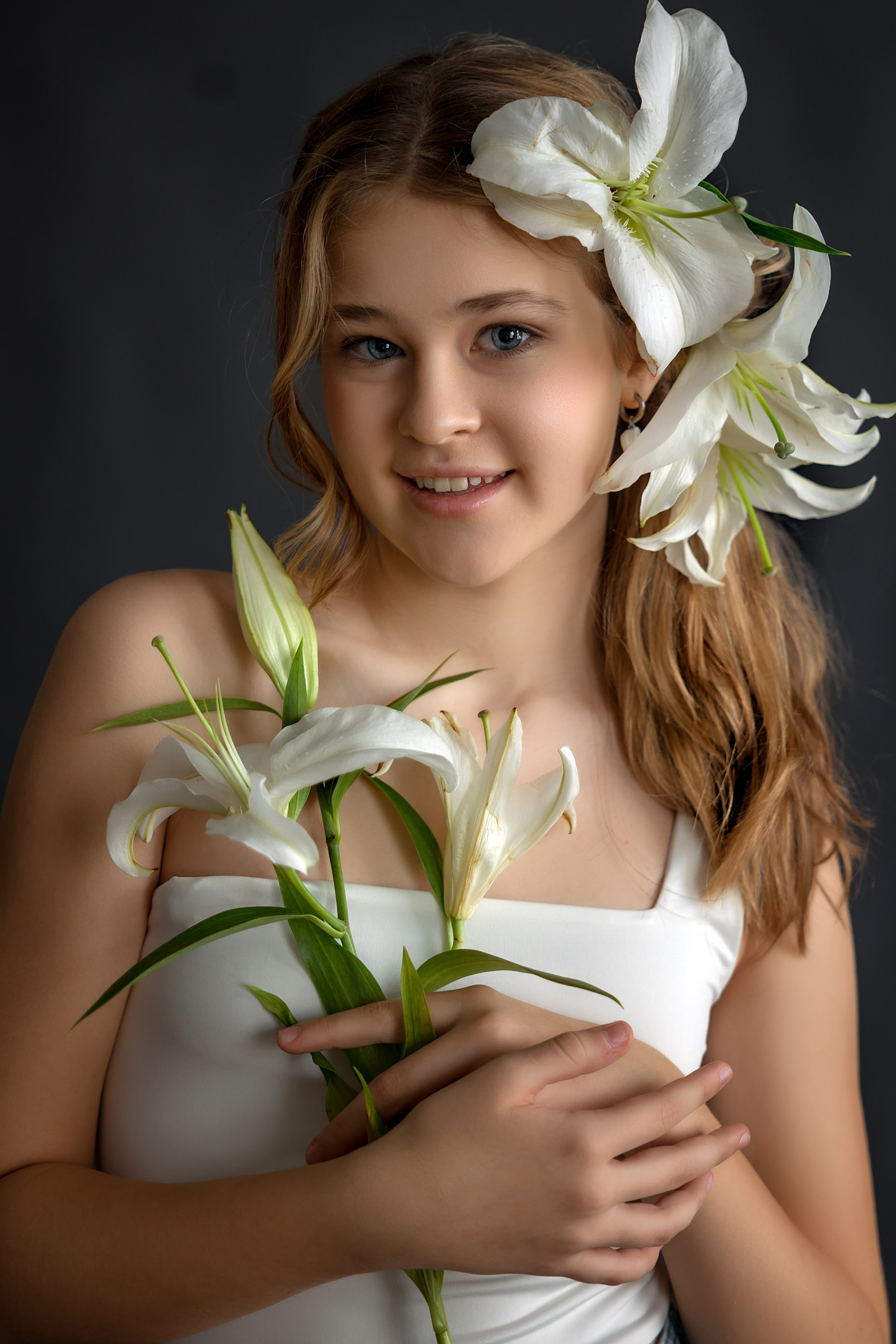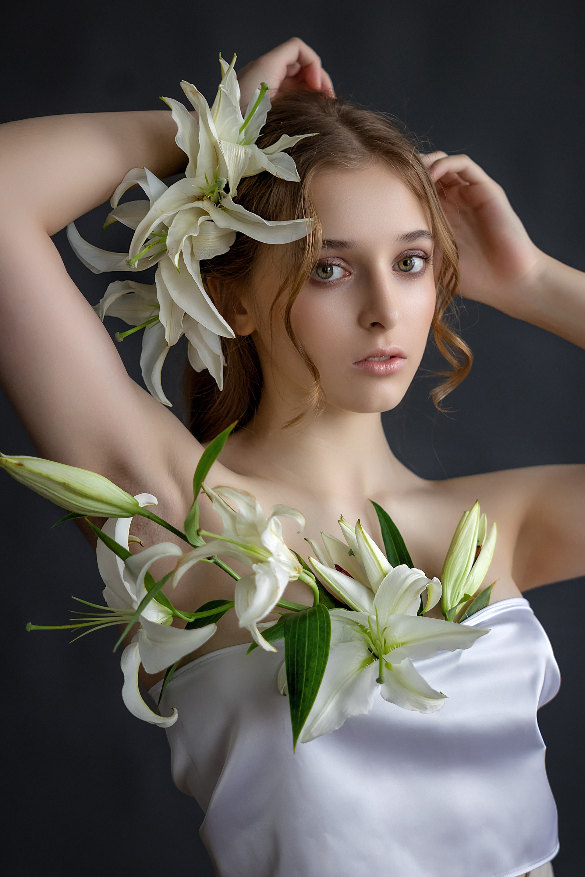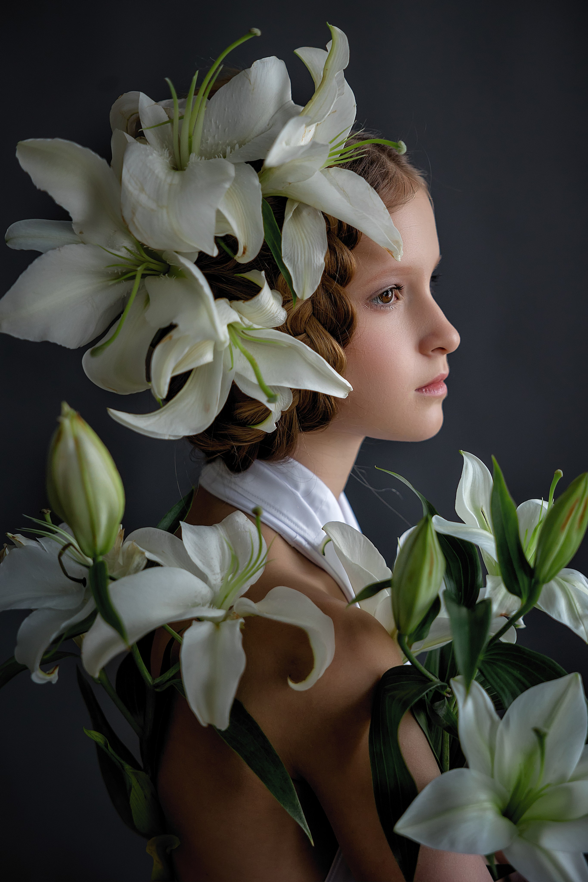 Нежный фотопроект Лилии с живыми цветами, для девушек