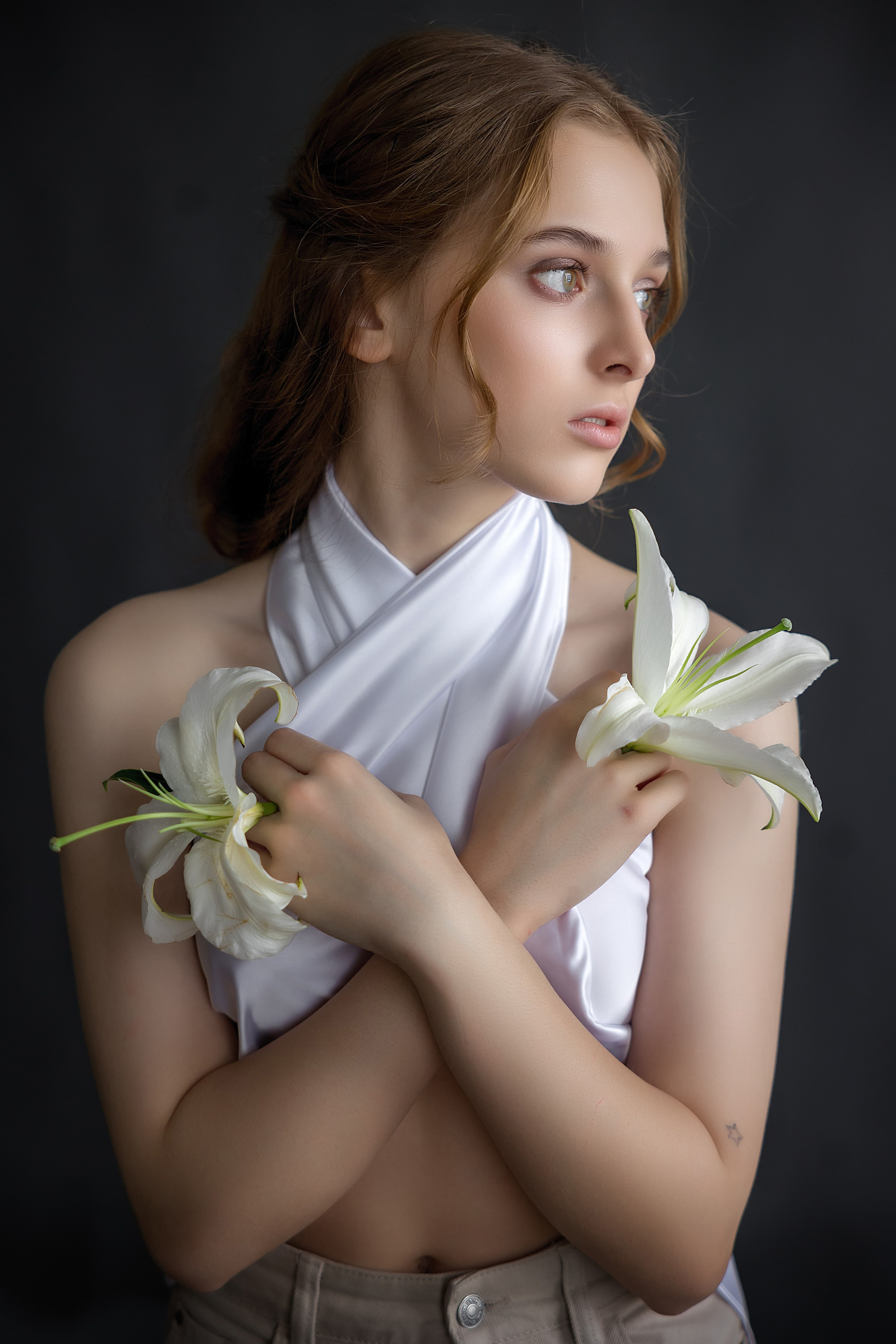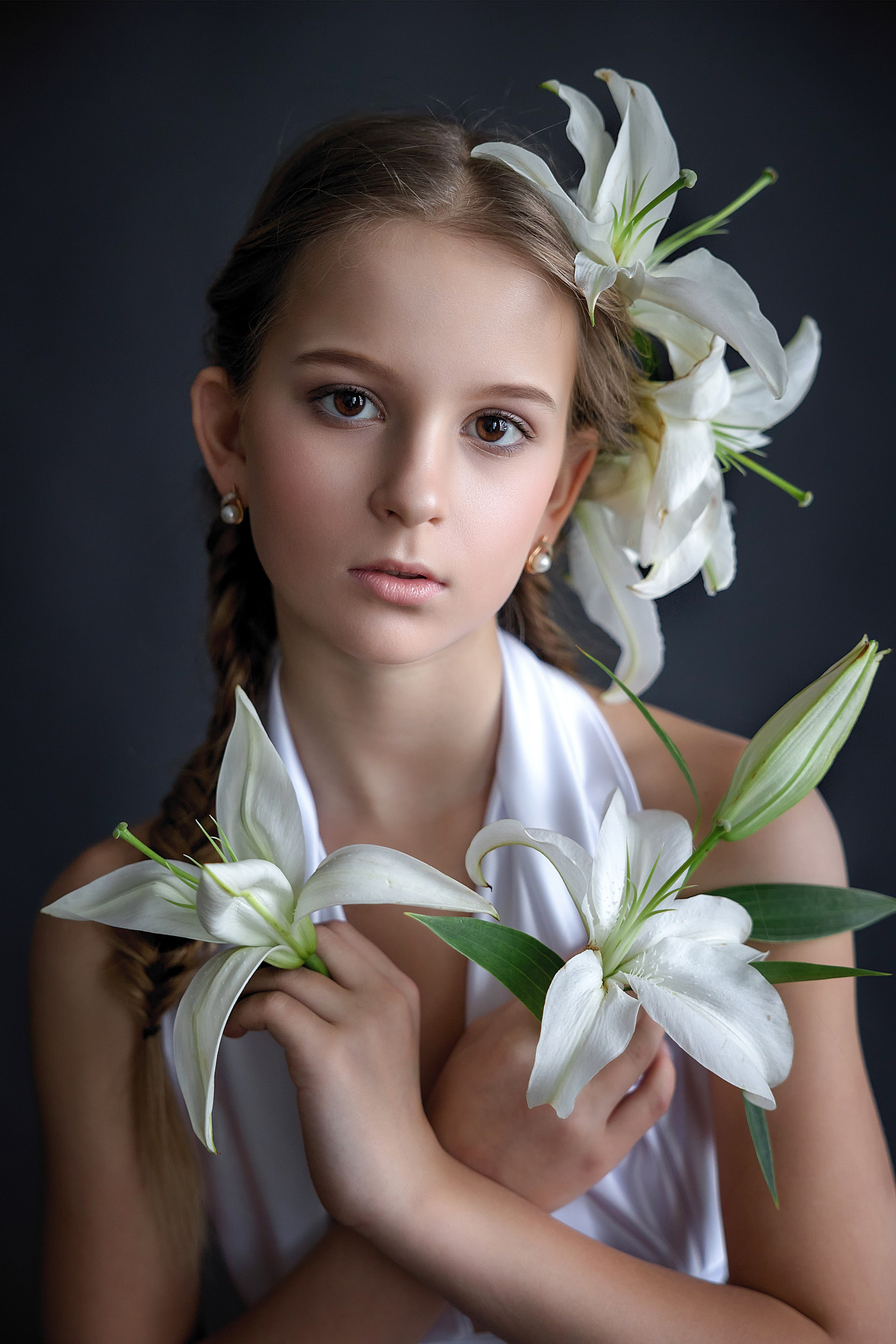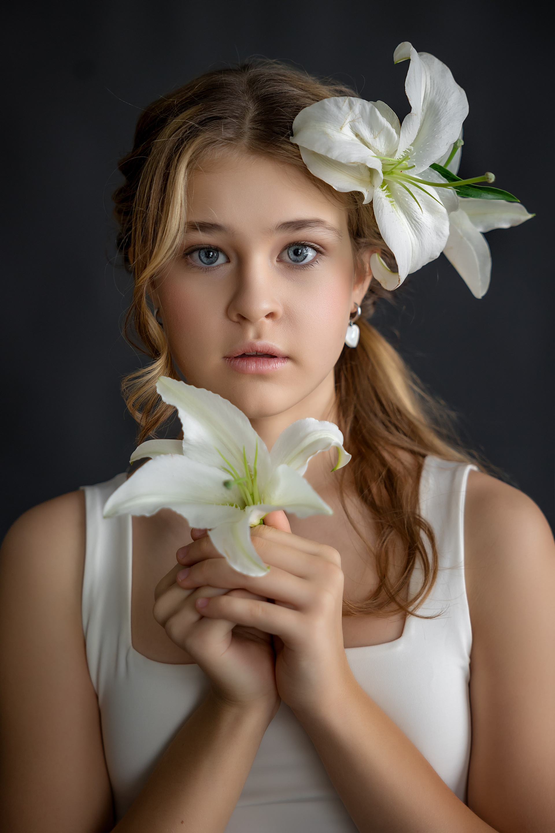 Нежный фотопроект Лилии с живыми цветами, для девушек