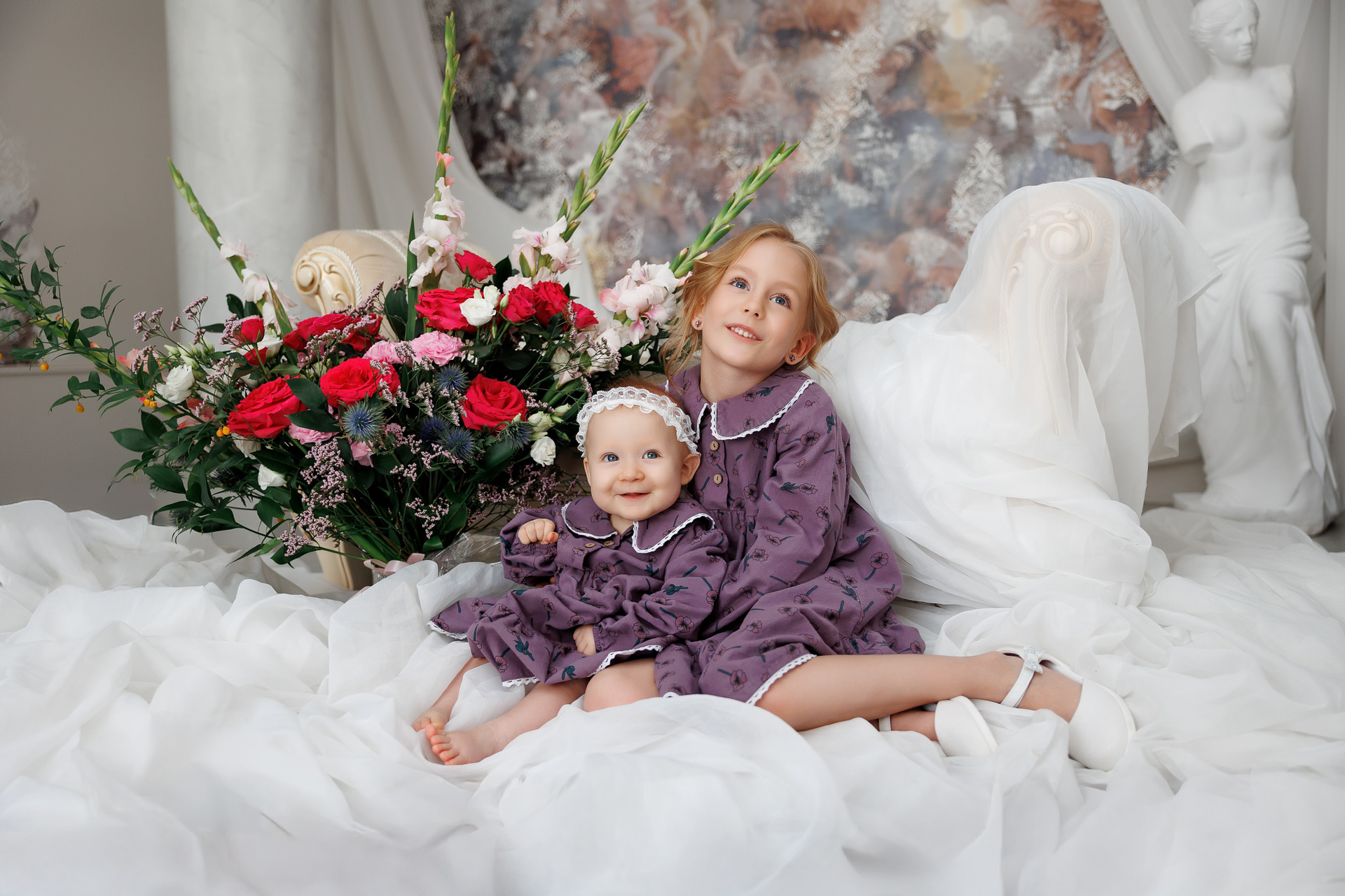Нежная фотосессия для мамы с двумя дочками